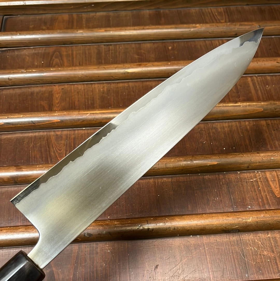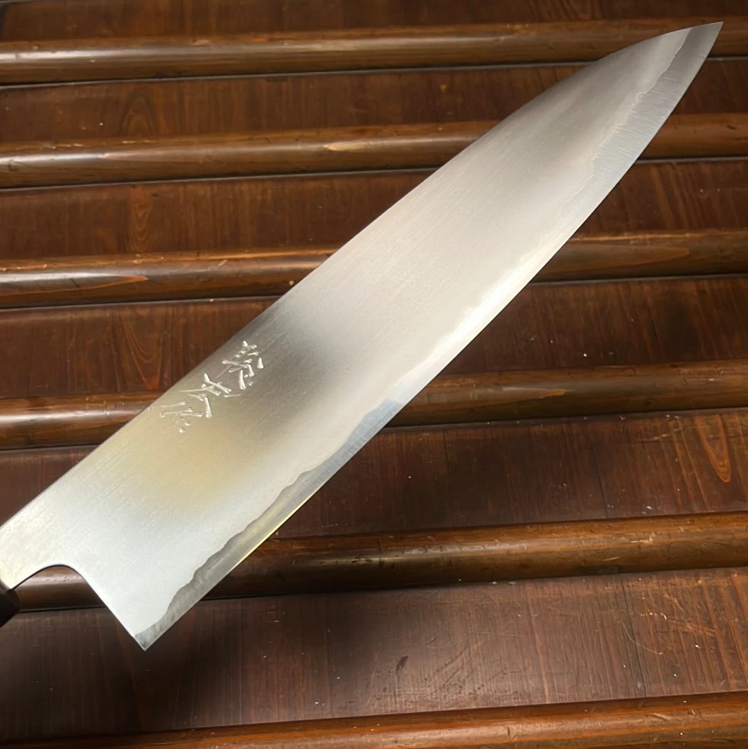 Wakui knives are characterized by a solid middle-weight yet robust Sanjo feel — very thin behind the edges, thicker at the spine, and amazingly easy to sharpen with clean grinds easy for follow up thinning.