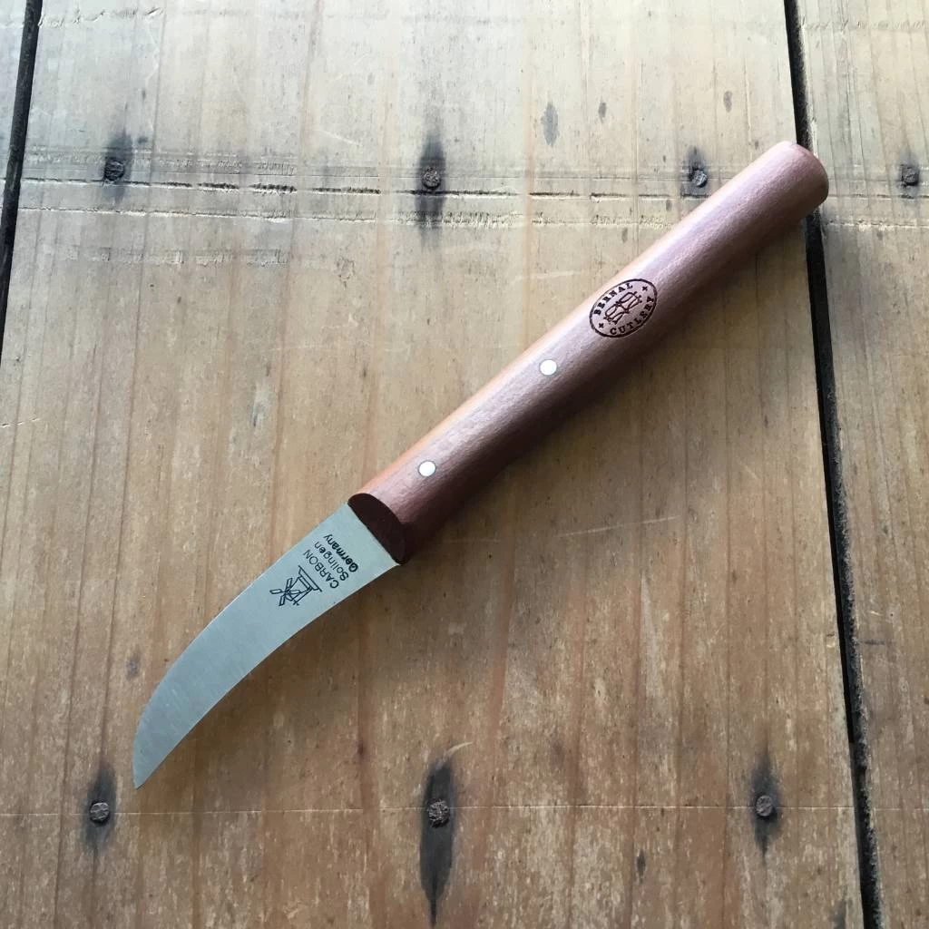 This carbon steel 2″ bird’s beak is perfect for smaller tasks and in-hand paring. These knives were used widely among the everyday cook, and would commonly be used in the Salle D’Office or the pantry prep room. Windmühlenmesser is known for their office knives!