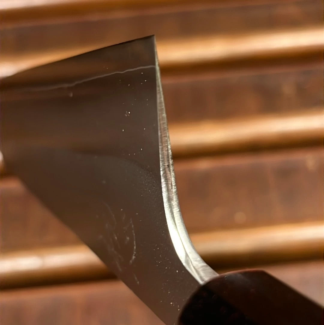 Hardened to 64 HRC, these knives hold a keen edge for a long time, owing to thier excellent heat treatment and despite this hardness they have a good degree of toughness and are very easy to sharpen. Being ground with a wide, kiriba primary bevel, they also allow for easy thinning down the road, especially as Yoshikane kireba grinds are especially flat.