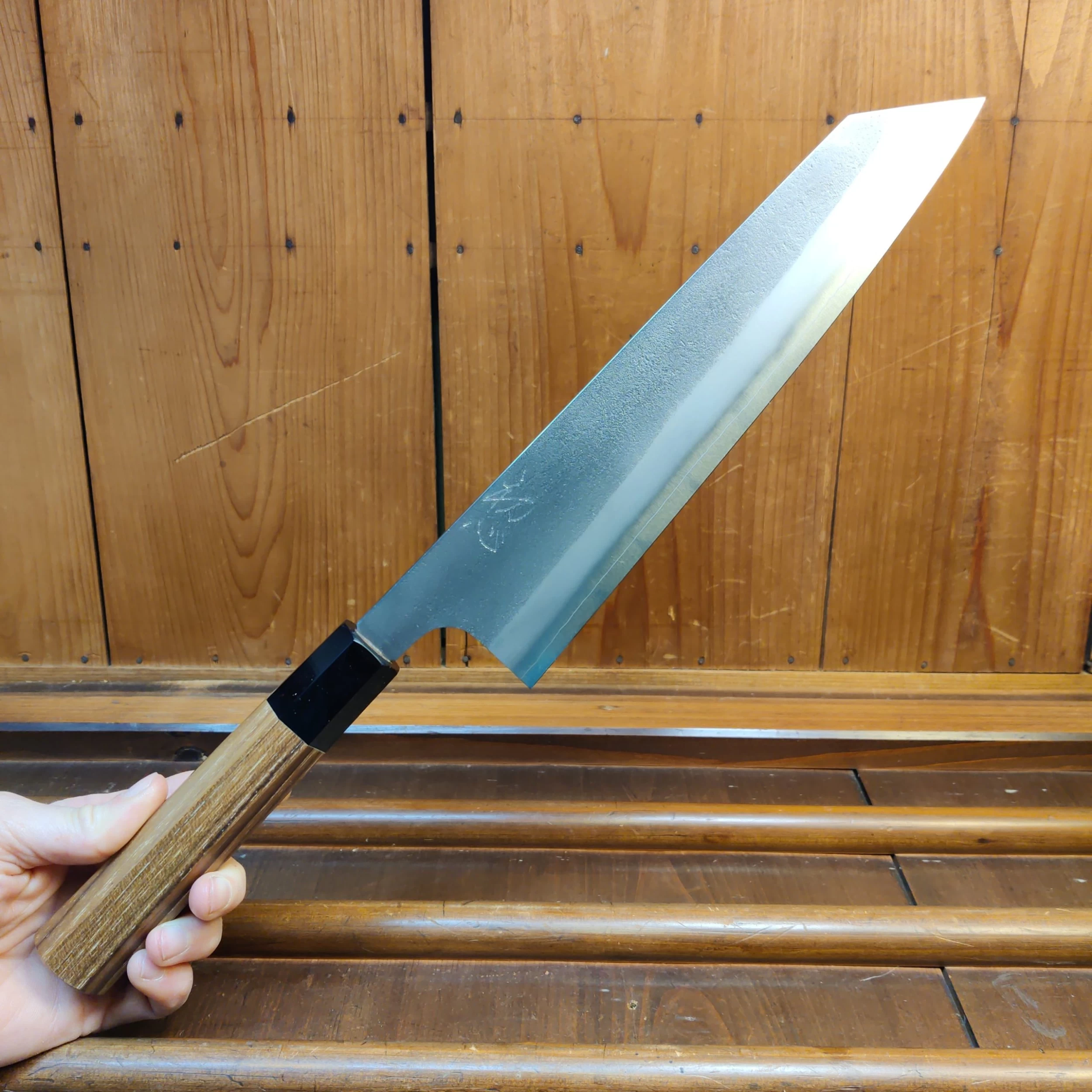 Yoshikane is headed by Kazuomi Yamamoto the fourth generation to operate this family run forging and grinding operation in Sanjo, Niigata which has been making kitchen knives since 1919. They deserve their good reputation for excellent forging and heat treatments, which make for easy sharpening and great edge life for both single and double bevel knives. This is especially true about the thin grinds provided on their double bevel knives. For middleweight Japanese knives, they cut like a much thinner blade.