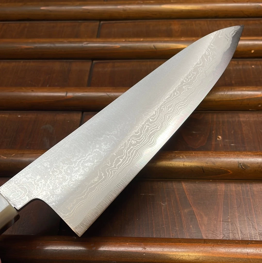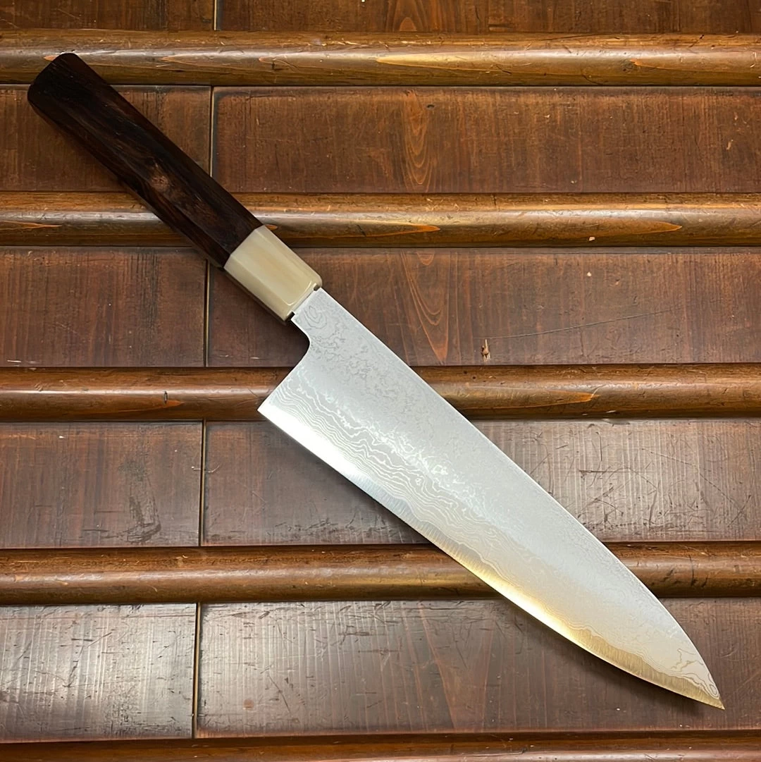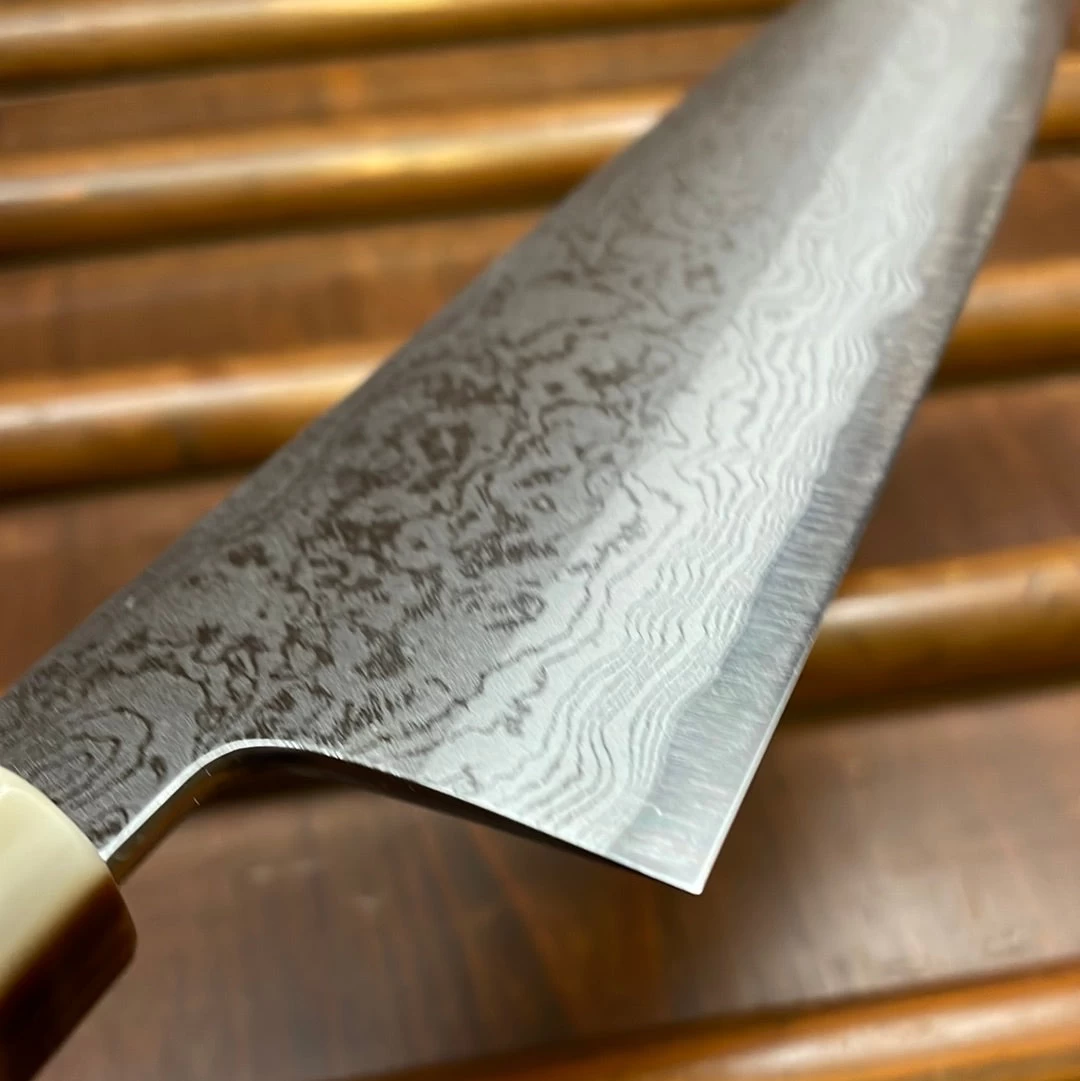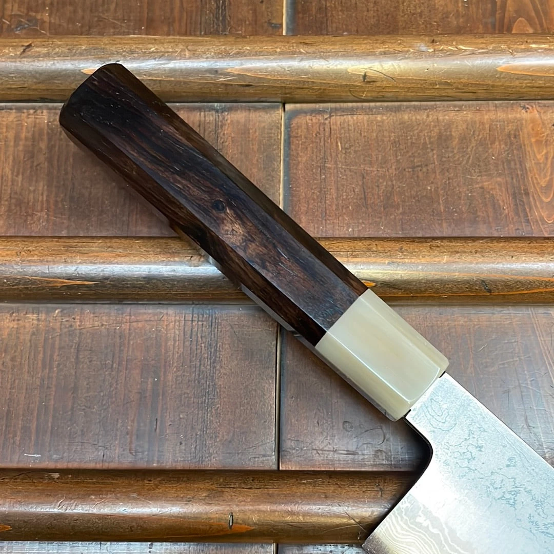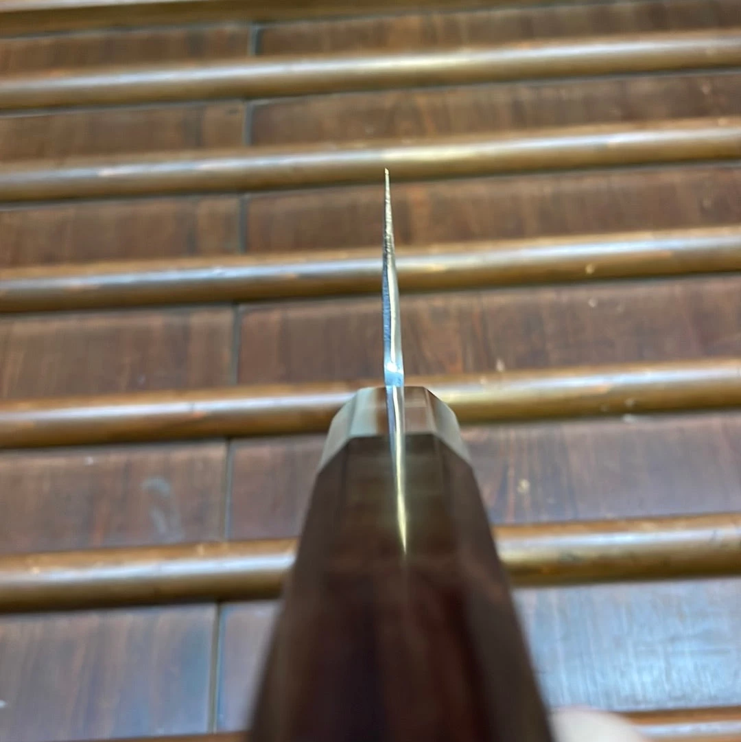 Tanaka-san’s top level forging and heat treatments make for an unusual ease of sharpening and superb edge life and toughness. Shirogami 1 is the highest carbon content of the shirogami steels.