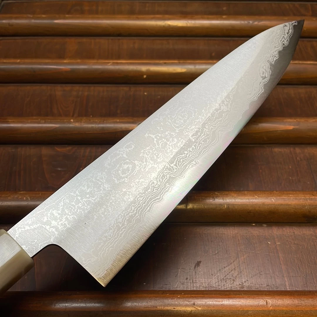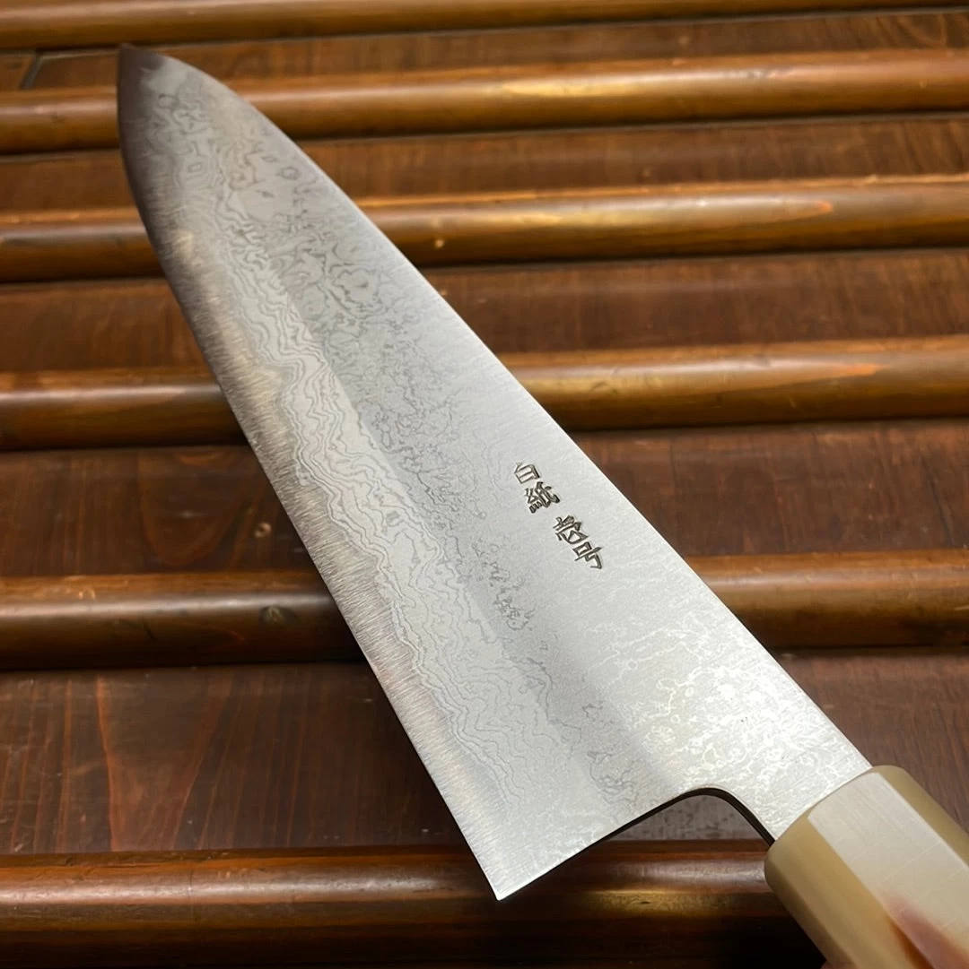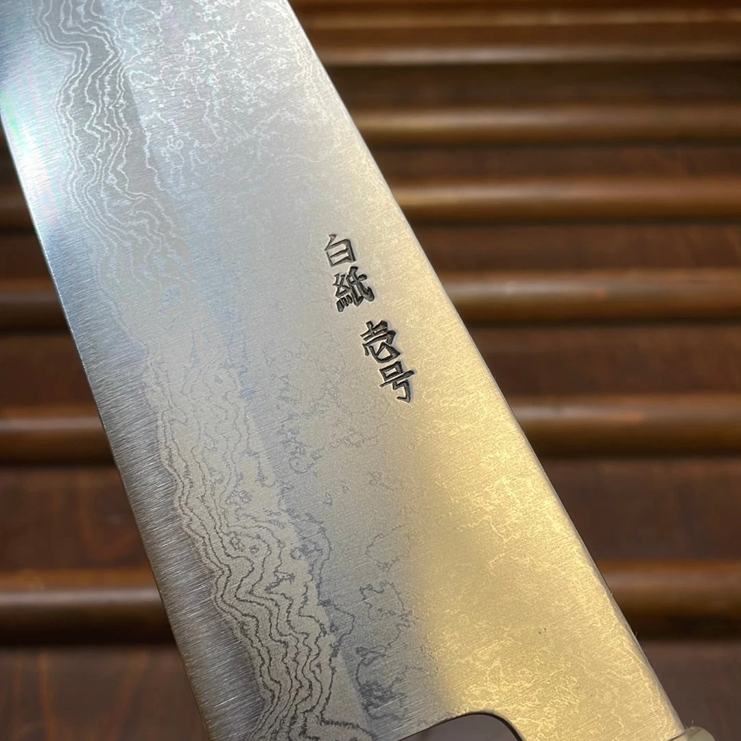 Tanaka-san’s top level forging and heat treatments make for an unusual ease of sharpening and superb edge life and toughness. Shirogami 1 is the highest carbon content of the shirogami steels.
