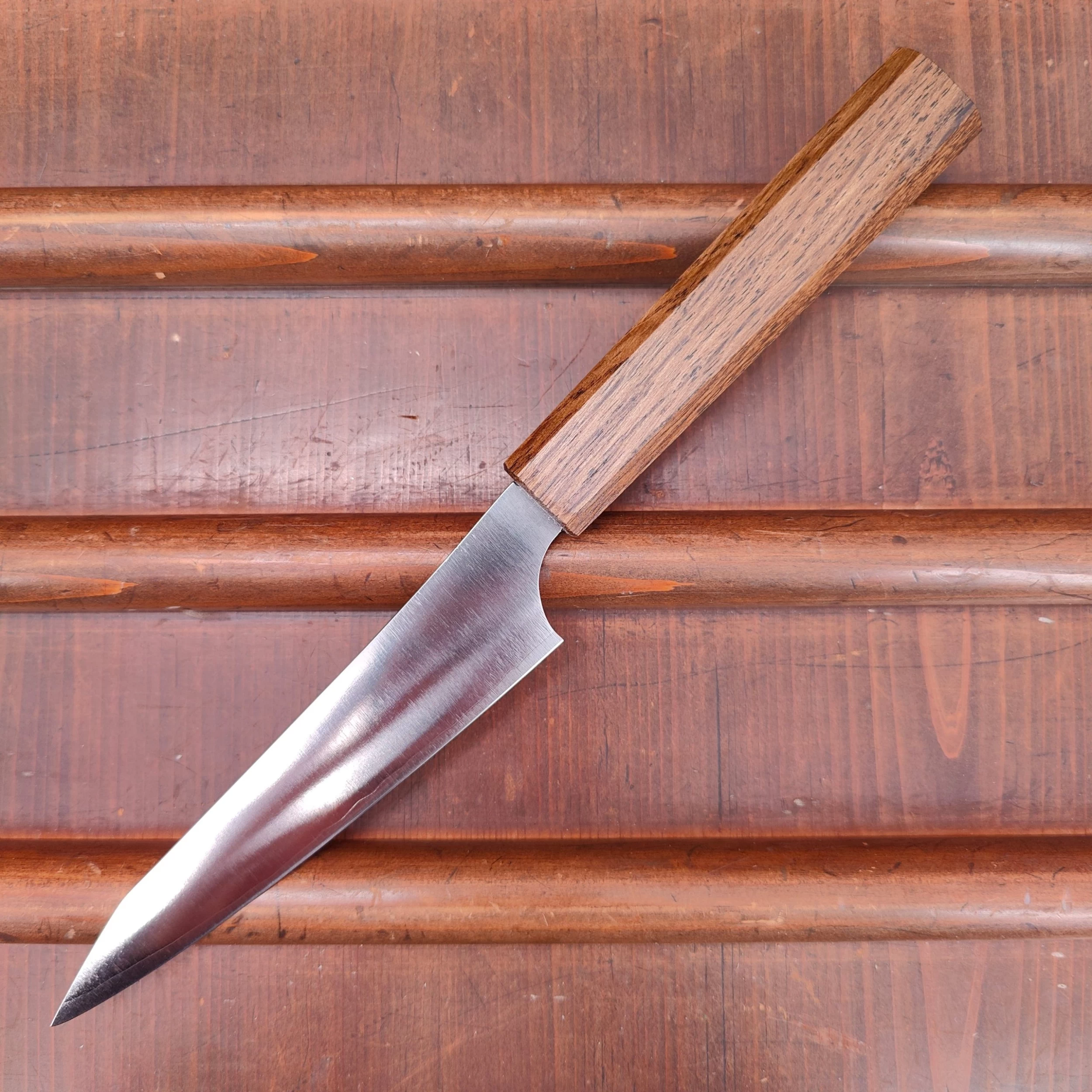 Forged by Yu Kurosaki in Takefu Japan. Yu Kurosaki is a relatively young blacksmith working out of Takefu Japan, he began smithing in 2002 and apprenticed under Hiroshi Kato. Kurosaki-san incorporates many of his own designs utilizing new steels as well as working in more traditional materials.