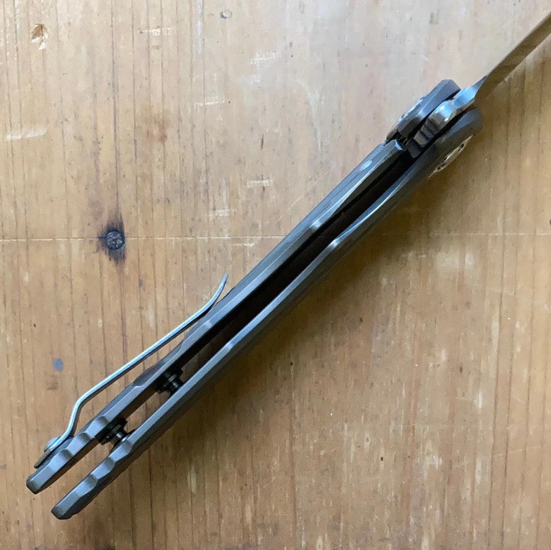 The 0609 is a smaller, even more carry-ready version of the original Factory Custom knife from ZT, RJ Martin, and Matt Martin. It offers a clean, streamlined look yet also features highly detailed handle machining that adds both grip and visual impact. For more visual “wow,” the 3-D machined handle is built of titanium anodized in attractive bronze. Features RJ’s oversized STP—”See-Through Pivot.”